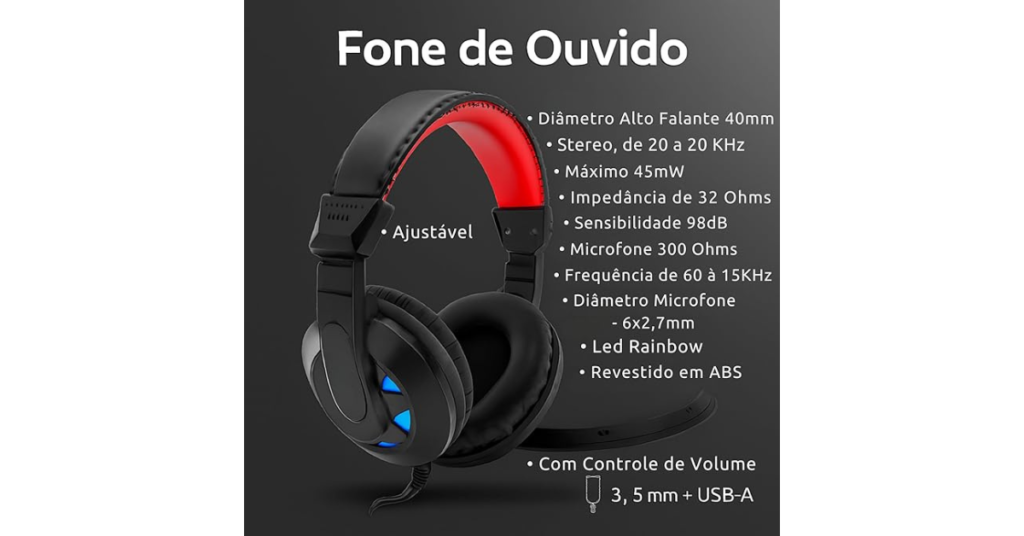 Conforto: Almofadas acolchoadas no headset para uso prolongado.