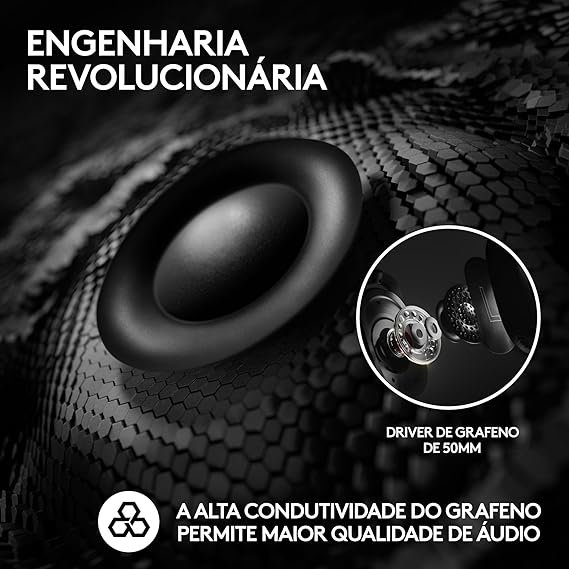 Drivers de grafeno de 50 mm: Proporcionam som de alta qualidade, com graves profundos e agudos claros.