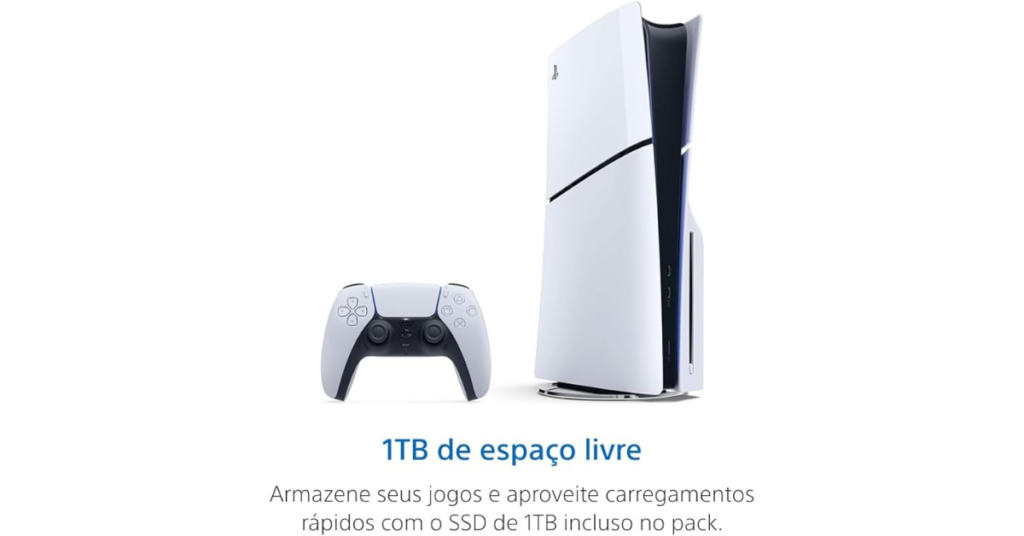A tecnologia de SSD (Solid State Drive) do PS5 Slim também garante tempos de carregamento extremamente rápidos, permitindo que você entre nos jogos quase instantaneamente. Essa característica é um verdadeiro diferencial em comparação a consoles da geração anterior, onde os jogadores frequentemente enfrentavam longos tempos de espera.